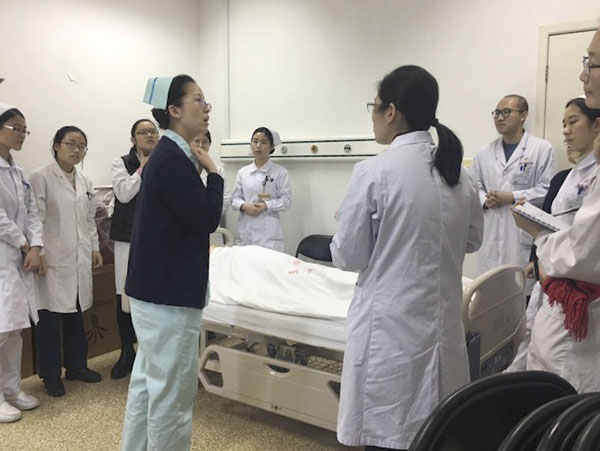 秦護士長首先通過三個復蘇成功的實例讓大家更加充分認識到早期啟動CPR是搶救成功的關鍵。隨后她對心肺復蘇技術的操作要點及注意事項進行了詳細且生動形象的講解,并利用護理部的“智能心肺復蘇模擬人”對心肺復蘇操作做了全程演示。