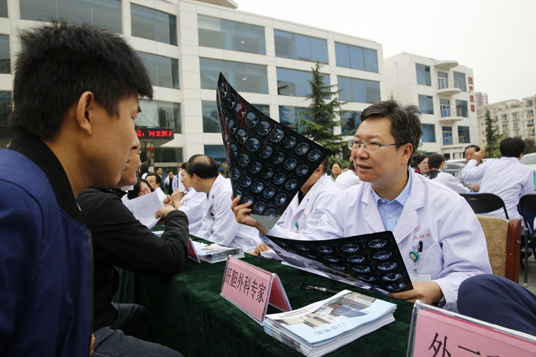 當(dāng)日,在我院副院長、肝膽外科專家彭利教授和東院副院長、泌尿外科專家張愛莉教授的帶領(lǐng)下,我院乳腺外科齊義新、外二科何景利、外三科王力利、耳鼻喉科葛俊恒、神經(jīng)外科李建峰、骨科張進(jìn)明、眼科張萌、口腔科張素欣、胸外科田子強(qiáng)、麻醉科徐紅萌、呼吸內(nèi)科葛暉、腎內(nèi)科張惠然、內(nèi)分泌科王原、消化內(nèi)科殷飛、神經(jīng)內(nèi)科趙靜霞、心內(nèi)科劉亞林、血液內(nèi)科劉麗宏、放射介入科楊光、婦科郝淑維、中醫(yī)科劉淑剛、腫瘤內(nèi)科姜達(dá)、產(chǎn)科張惠欣、生殖醫(yī)學(xué)科劉復(fù)全、疼痛康復(fù)科張靜、兒科刁玉巧、全科醫(yī)學(xué)科郭軍平、CT磁共振科許茜、皮膚科王文氫、重癥醫(yī)學(xué)科趙釵等30余位專家教授在門診廣場上為群眾免費(fèi)提供健康咨詢服務(wù),許多疑難病例還現(xiàn)場進(jìn)行了“MDT”討論。護(hù)理部劉風(fēng)俠副主任以及郝秀喬、王建新、侯曉娟三位護(hù)士長現(xiàn)場為群眾免費(fèi)測量血壓、血糖,解答關(guān)于PICC維護(hù)和輸液港的相關(guān)問題。