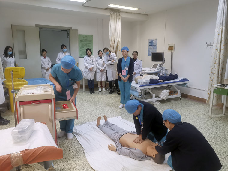 為提高門診醫(yī)技科室急救的能力,按照門診部、護(hù)理部的工作部署,11月12日至29日,急診科的醫(yī)護(hù)團(tuán)隊(duì)先后深入14個(gè)門診醫(yī)技科室,就“心肺復(fù)蘇術(shù)、搶救車藥理知識(shí)、除顫術(shù)、過(guò)敏性休克、突發(fā)暈厥”等知識(shí)為他們進(jìn)行培訓(xùn),累計(jì)培訓(xùn)近400人次。