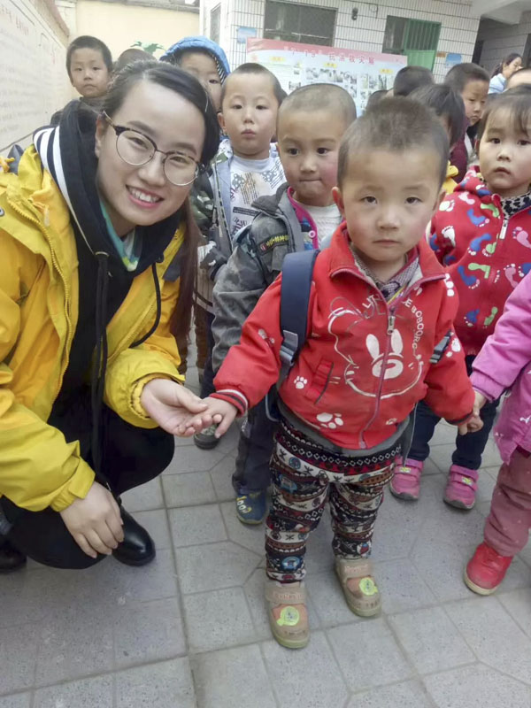 2015年的梅雨季節,位于石家莊西部的平山山區發生了泥石流,沖垮了平山霍賓臺小學,她和一些愛心朋友得知消息后,自發湊了一些錢,給當地小朋友買了書包、筆、本,并自己開車送了過去。為了捐助有效,她們還與校方聯系,對學生們進行語文、數學和英語的分別授課。2017年,她與愛心朋友們再次出發,主動聯系老家井陘縣塔寺坡村的學校,為孩子們帶去學習用品并積極授課,還專門請了一位心理咨詢師,給男生女生分別上課,教他們如何保護自己。她的努力也得到父母的大力支持,并一同加入進來。