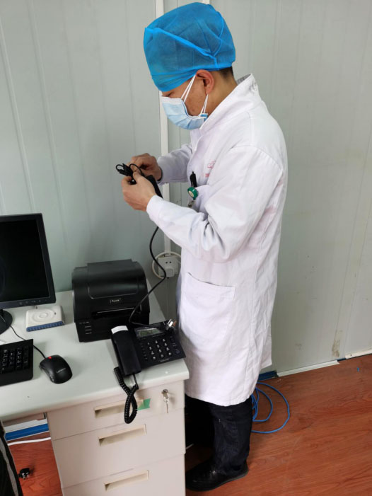 潘曉雄在隔離病房測試網(wǎng)絡(luò)線路