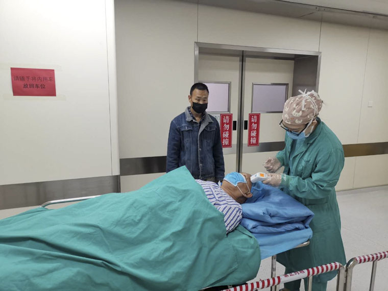 為不遺漏每一個發熱病人,科室規定:到病房接病人的時候,一定要與病房護士共同測量患者和家屬的體溫,反復詢問病史、接觸史、外出史和家里其他成員的身體狀況等,做好篩查,共同確認無發熱、咳嗽等疑似癥狀后,再填寫《交接單》,雙簽字。之后,進行患者轉運,到達手術室緩沖間后再次測量。在連臺手術之間,要嚴格執行手術間的清掃流程,指導保潔人員進行徹底處理。根據相關規范等的要求,嚴格進行手術間的凈化,并做好記錄。每日手術結束后,院感組根據相關規范和要求,指導保潔員做好終末保潔工作。
