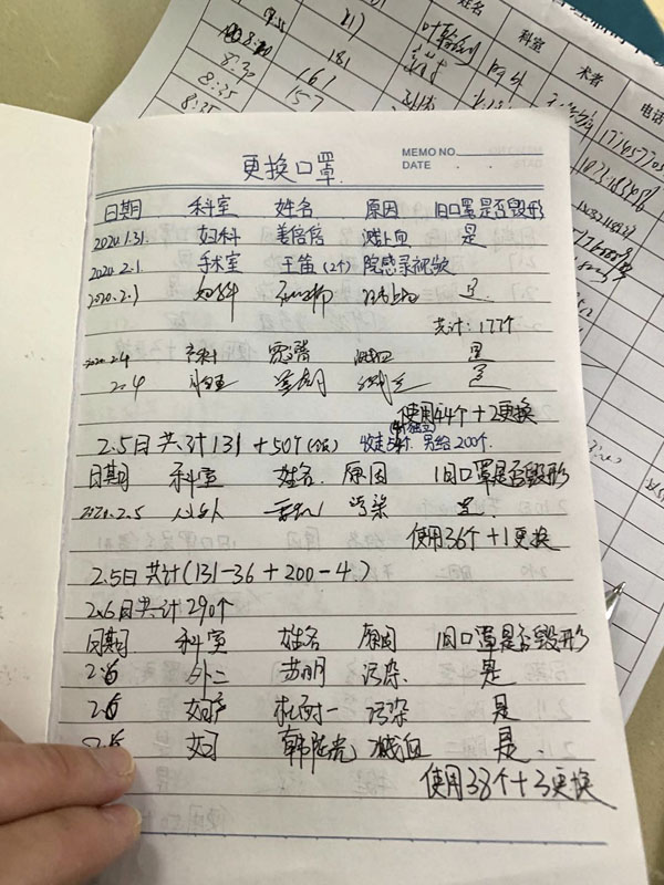 在防控物資緊缺的情況下,護士長帶領院感組,由專人負責醫療物資管理,每日登記發放情況并匯總上報護士長,合理調配人員和醫療資源,確保戰備物資合理、高效利用。