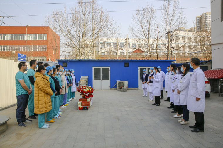 為打贏疫情防控阻擊戰(zhàn),保衛(wèi)人民群眾身體健康,我院選派第三批醫(yī)護(hù)人員進(jìn)駐發(fā)熱門診。3月23日,黨委副書記李曉玲,副院長(zhǎng)耿翠芝、何宏濤代表醫(yī)院黨委分別在本部和東院看望慰問(wèn)了第三批發(fā)熱門診的醫(yī)護(hù)人員,既表達(dá)了醫(yī)院對(duì)他們的感謝和支持,也對(duì)工作和生活上的細(xì)節(jié)進(jìn)行叮囑。