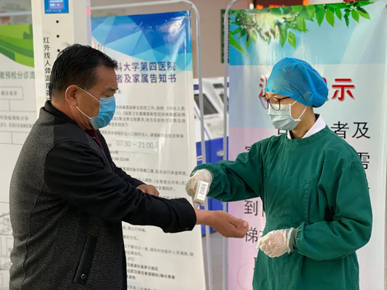 面對嚴(yán)峻的形勢,護理教學(xué)辦公室全體教師在第一時間遞交請戰(zhàn)書,最終,李志紅主任、范曉丹副主任、吳景梅老師和李慧娟老師分批參加了醫(yī)院體溫監(jiān)測工作,段紅霞老師雖已年過五旬,仍多次申請參加。各位老師對進入醫(yī)院急診、門診和病房的每個人測量體溫,并詢問其身體狀況和近期相關(guān)流行病學(xué)問題,如發(fā)現(xiàn)發(fā)熱患者和有流行病學(xué)史的人員,第一時間將其護送到發(fā)熱門診做進一步的診療。她們勇?lián)姑袑嵶龅桨押冕t(yī)院第一道關(guān)口。