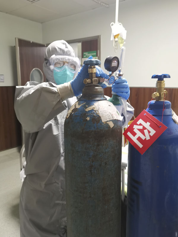 開始工作后,我們迅速進(jìn)入角色,雖然辛苦,但我同時感受到很多溫暖。對口支援的醫(yī)院達(dá)不到中心供氧的要求,這時候就需要我們?nèi)グ徇\(yùn)幾百斤重的氧氣筒。之前很少干這種重活兒,剛開始也不知道怎么搬,同事耐心告訴我要用巧勁兒使氧氣筒轉(zhuǎn)起來,這樣就會省很多力氣。我們互幫互助,慢慢熟練,一個班下來搬了8個氧氣筒,衣服徹底濕透了,但是這種團(tuán)結(jié)、努力的氛圍讓我充滿干勁。還有一次,由于給病人鋪床動作過大,我的防護(hù)服撕開了一個口子,當(dāng)時沒有在意,病人卻一個勁兒的把我往病房外推,說:“你先出去把衣服弄一下,衣服破了。”他們并沒有因?yàn)樽约菏遣∪耍笪亿s緊做床旁護(hù)理。我們?nèi)蔽溲b誰也不認(rèn)識誰,衣服上會寫“河北某某”,他們卻總是說:“謝謝你們這么大老遠(yuǎn)來支援我們,謝謝!”我們不是親人卻勝似親人,我從他們身上學(xué)會了感恩,感動他們的善良,感動他們把我們像孩子一樣對待。有一種愛叫牽掛,我們除了做好專業(yè)的醫(yī)學(xué)護(hù)理以外,還需要幫助生活不能自理的爺爺奶奶喂水、喂飯、喂藥、端大小便。其中我負(fù)責(zé)的病人中有一位91歲的老爺爺,他家人都因?yàn)樾滦凸跔畈《靖腥痉窝兹ナ溃晕姨貏e關(guān)注他。我會每天幫著爺爺翻身活動身體,避免產(chǎn)生血栓和壓瘡,我不當(dāng)班的時候會和其他護(hù)士詳細(xì)交待。我們閉科的時候,爺爺還沒有達(dá)到出院的標(biāo)準(zhǔn),需要轉(zhuǎn)運(yùn)到別的醫(yī)院,雖然我當(dāng)天不上班,但依然申請一起護(hù)送爺爺?shù)蕉c(diǎn)醫(yī)院,他成了我的一種寄托和牽掛!希望爺爺能漸漸好起來。在武漢的50多天,我們從最初的生熟緊張、手忙腳亂,到后來的熟練自如、有條不紊,經(jīng)歷了太多。新型冠狀病毒讓我們經(jīng)受著一場特殊的考驗(yàn),但我無怨無悔來這里奮斗,我很珍惜結(jié)識了這么多可愛的人,我更感受到在黨中央的堅(jiān)強(qiáng)領(lǐng)導(dǎo)和全國人民迸發(fā)出的強(qiáng)大合力,相信取得最終勝利的時間越來越近了。