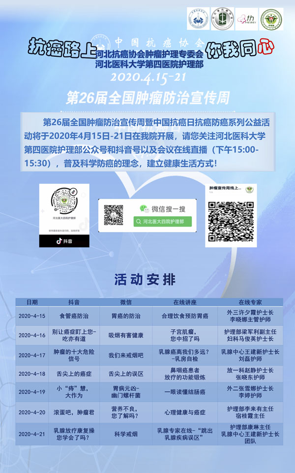 河北抗癌協(xié)會(huì)腫瘤護(hù)理專委會(huì)系列活動(dòng)來(lái)了!