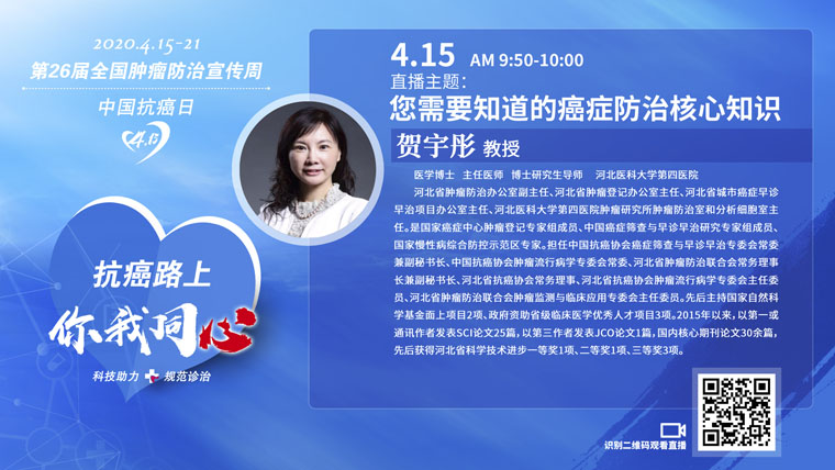 明日直播4.15|賀宇彤:您需要知道的癌癥防治核心知識