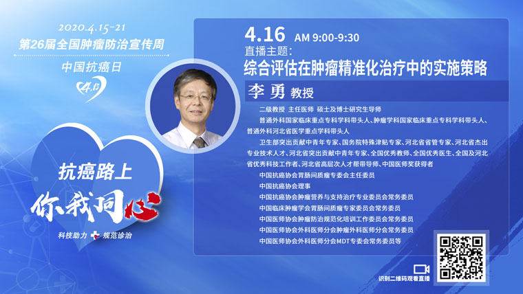 明日直播4.16|李勇:綜合評(píng)估在腫瘤精準(zhǔn)化治療中的實(shí)施策略
