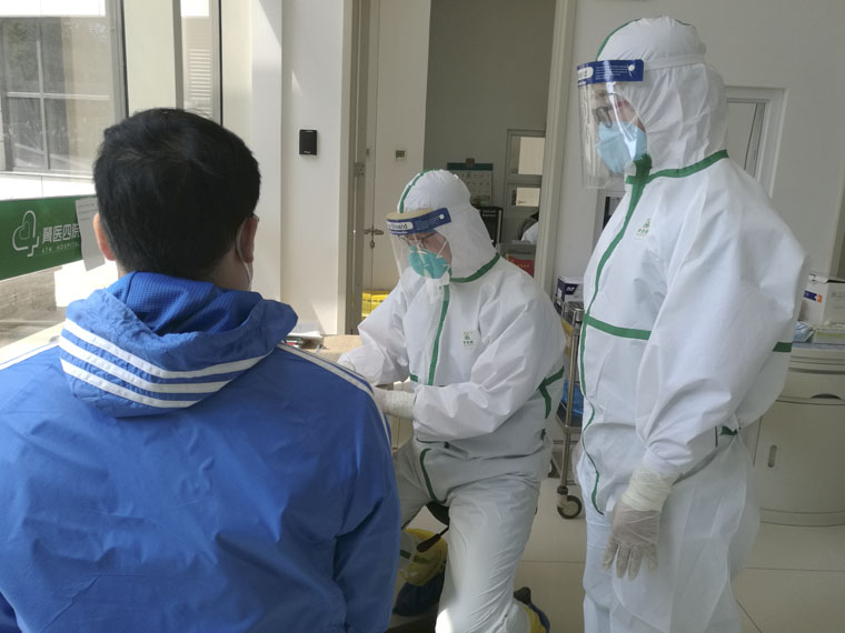 本部發(fā)熱門(mén)診的接診流程在嚴(yán)格執(zhí)行以往制定的流程之外,也根據(jù)形勢(shì)不斷進(jìn)行更新。當(dāng)前復(fù)工潮開(kāi)始涌現(xiàn),特別是有著疑似接觸史或者可疑癥狀的等待復(fù)工人員也越來(lái)越多,發(fā)熱門(mén)診嚴(yán)格執(zhí)行篩查制度,專(zhuān)家組針對(duì)可疑病例做進(jìn)一步篩查。