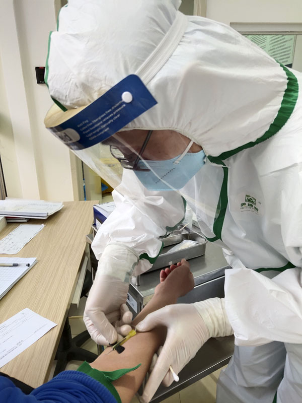 在隔離病房,患者身邊沒(méi)有親人,容易產(chǎn)生孤獨(dú)恐懼心理,醫(yī)護(hù)人員除了為患者做好咽拭子采集,輸液治療及生活幫助外,還要更多關(guān)注患者心理變化并及時(shí)溝通給予安慰,緩解其緊張情緒。有一位發(fā)熱患者是哺乳期的媽媽?zhuān)诘弥约阂桓綦x留觀時(shí)顯得很無(wú)措。醫(yī)生一遍又一遍地為其耐心講解病情及留觀的必要性,解除其顧慮直到患者配合治療。有一位17歲的高三學(xué)生在留觀后擔(dān)心網(wǎng)課沒(méi)法上,護(hù)士們趕緊找到了插線板,幫助他連接發(fā)熱診區(qū)的WiFi,就這樣把網(wǎng)課搬進(jìn)了隔離病房,一邊輸液一邊上課。還有一位年輕的患者半夜突然胃不舒服,沒(méi)來(lái)得及去衛(wèi)生間就吐在病房了,護(hù)士們趕緊跑來(lái)清理,她站在床旁一臉歉疚,護(hù)士們連連安慰她,她如釋重負(fù)地說(shuō)道:“給你們添麻煩了,謝謝……”