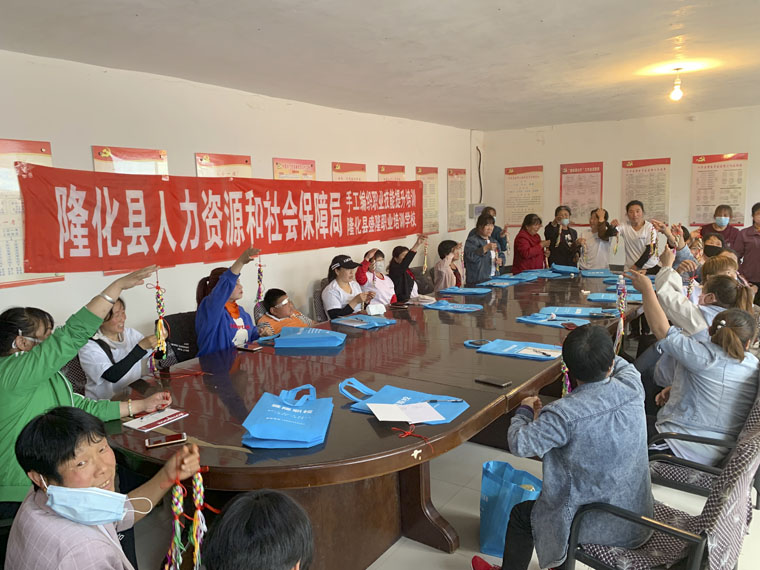 日前,由我院駐九屋營村工作隊牽頭和支持,河北省非物質文化遺產傳播基地、國翠非物質文化遺產交流中心聯合隆化縣盛隆職業培訓學校主導、隆化縣人力資源和社會保障局大力支持的非遺扶貧(創業、就業)繩結技藝走進隆化縣九屋營村,為當地百姓就業創業、脫貧致富打開了一扇新的大門。