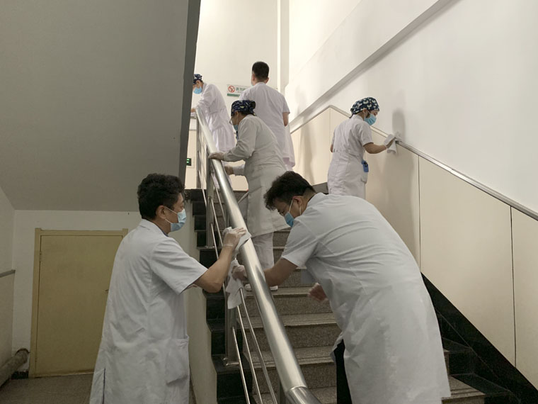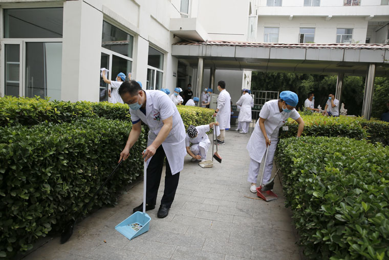 東院的衛(wèi)生區(qū)包括診區(qū)、病區(qū)、教學(xué)樓、大廳、步行梯、公共通道、職工食堂、花園綠化帶等不同區(qū)域,場(chǎng)地分散,任務(wù)繁多。東院黨辦室、工會(huì)和后勤保障處結(jié)合科室分布、工作性質(zhì)、黨員人數(shù)等具體情況,為各黨支部劃分了各自的責(zé)任區(qū),分片包干,分頭負(fù)責(zé)。