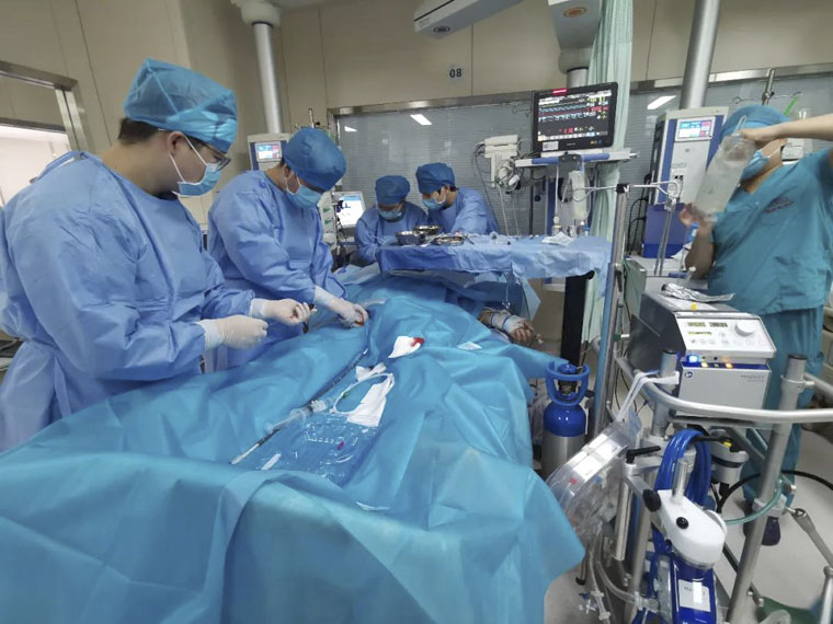 時至15:40點,醫(yī)護陪同ECMO輔助下行開胸探查。胸外科高峰主任醫(yī)師帶領曾輝、石志華主治醫(yī)師加班手術(shù)。果不其然,多處斷裂的支氣管已讓患者的左下肺沒有了存在的意義。切除、修補,在胸外科、手術(shù)室、麻醉科、ICU多科室的努力下3個多小時的手術(shù)順利完成。胸腔閉式引流沒有了氣泡,患者的生命體征漸漸趨于平穩(wěn)... ...