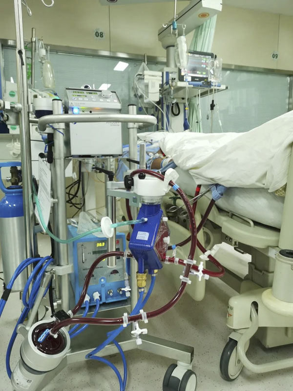ECMO,體外膜肺氧合,因為新冠肺炎疫情而被更多的普通人所熟知。在重癥醫(yī)學領域,當患者心肺功能嚴重受損,常規(guī)手段及藥物不能維持生命的時候,ECMO就該登場了。有了ECMO我們就有了更多的時間去治療原發(fā)病更多的時間去祛除病因更多的機會挽救患者的生命!河北醫(yī)科大學第四醫(yī)院重癥醫(yī)學自2015年起堅持高標準、規(guī)范實施的原則開展了近20例ECMO,在胡振杰主任的帶領下ECMO小組不斷成長保衛(wèi)患者生命使命必達!目前科室里兩臺ECMO同時在運轉(zhuǎn),其中一臺已連續(xù)運轉(zhuǎn)100多天,更換膜肺6次,目前患者神志清楚,生命體征平穩(wěn),ECMO條件亦在逐漸下調(diào)。ECMO,不斷刷新著我們對生命和希望的認識。