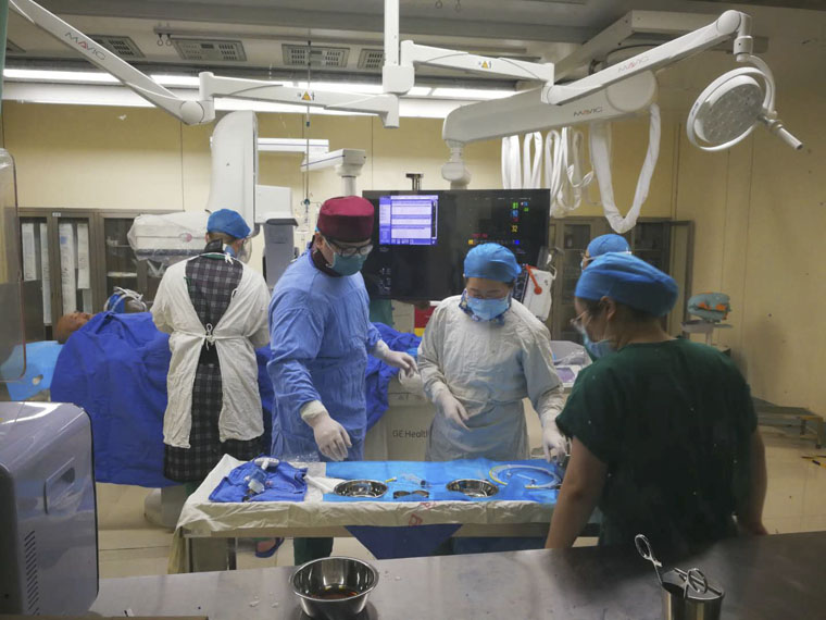 術(shù)前,王富軍主任組織杜亞萍醫(yī)生、白磊醫(yī)生等參與手術(shù)的相關(guān)人員進(jìn)行了詳細(xì)的討論,由于患者既往曾做過(guò)1次心臟支架置入術(shù),1次心臟“搭橋”手術(shù),2次下肢動(dòng)脈介入術(shù),全身血管基礎(chǔ)很差,而糖尿病患者的下肢動(dòng)脈狹窄、閉塞往往發(fā)生于膝下相對(duì)較細(xì)的動(dòng)脈,這就要求手術(shù)的精細(xì)程度更高,時(shí)間花費(fèi)更多,內(nèi)分泌科研究制定了多種預(yù)案,手術(shù)如期進(jìn)行。患者術(shù)中造影顯示:股淺動(dòng)脈原支架端嚴(yán)重狹窄,而最嚴(yán)重的病變部分正如醫(yī)生們所料,出現(xiàn)在了膝下,膝下三支主要?jiǎng)用}只剩了腓動(dòng)脈“一枝獨(dú)秀”。王富軍主任經(jīng)過(guò)多次試探,成功進(jìn)入脛后動(dòng)脈遠(yuǎn)端真腔,通過(guò)不同半徑的球囊小心翼翼地分次擴(kuò)張,最終脛后動(dòng)脈被成功打通,遠(yuǎn)端直達(dá)足趾并與腓動(dòng)脈交通支相連,重建血液循環(huán)。術(shù)后老董足部皮溫明顯升高,疼痛明顯緩解,第二天查房時(shí)他的激動(dòng)之情溢于言表,醫(yī)護(hù)們也紛紛鼓勵(lì)他說(shuō),“終于挺過(guò)來(lái)了,真好!”