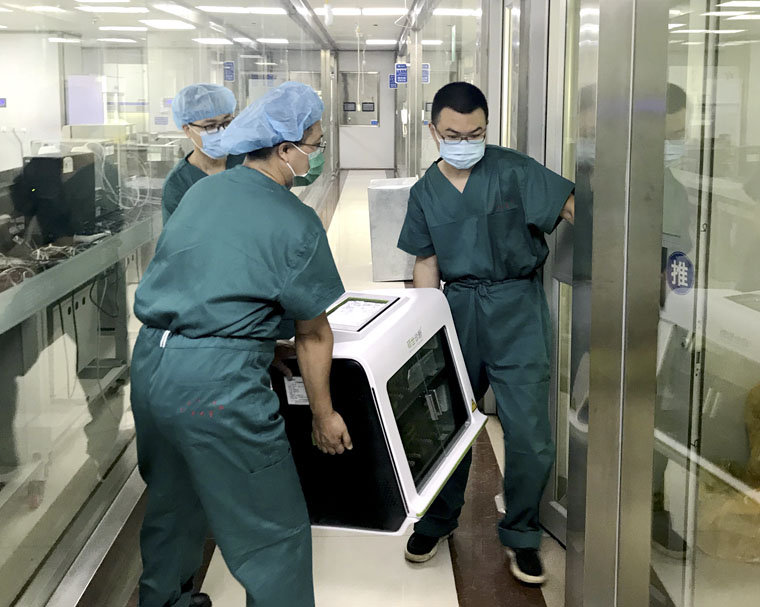 我和醫大三院的馮彥蕊老師就如何最大限度利用現有人員和儀器提升核酸檢測能力提出建議,尤其是建議將現在的6小時輪班制改為12小時輪班,同時進行班內輪崗、輪休,以保證檢測人員的體力、精力始終處于最佳狀態。我們當即將新到的儀器安裝到位,并進行簡單的培訓。之后,我們河北醫療隊進行了分組,有負責標本前處理的,有負責標本混樣的,我與另一位老師負責加樣,力爭在各自崗位通過實踐發現問題。