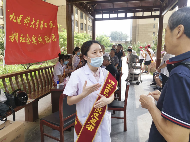 為進(jìn)一步提高社區(qū)居民健康水平,增強(qiáng)自我健康保護(hù)意識(shí),8月28日,由10多名專碩規(guī)培醫(yī)師及在院實(shí)習(xí)醫(yī)學(xué)生組成的我院暑期社會(huì)實(shí)踐服務(wù)團(tuán)赴長安區(qū)碧景園社區(qū)開展健康咨詢服務(wù)活動(dòng),共發(fā)放健康宣傳資料200多份,服務(wù)居民群眾100余人次。