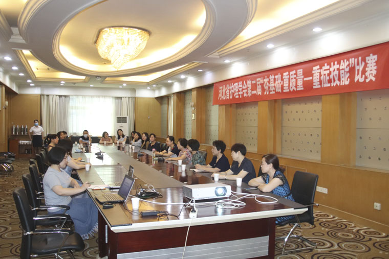 在疫情防控常態(tài)化要求下,本次大賽審核了參賽選手及評委老師們的核算檢測結(jié)果,并采取封閉式管理,謝絕陪同人員進(jìn)入會場參賽,以保證比賽安全、高效、有序地進(jìn)行。河北省護(hù)理學(xué)會趙莉理事長參加了此次大賽的賽前動員會,重癥護(hù)理專業(yè)委員會尹彥玲主任委員對由20人組成的專家評委團(tuán)進(jìn)行了細(xì)致全面的培訓(xùn),以統(tǒng)一標(biāo)準(zhǔn),保證了比賽的同質(zhì)性和公正性。