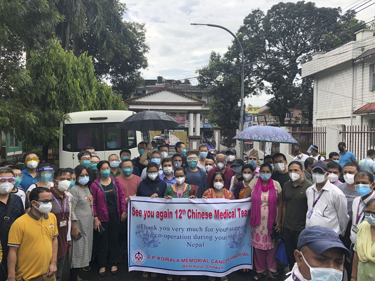 9月9日一大早,B.P.柯依拉臘紀念腫瘤醫(yī)院的領導、同事聚集在大巴車前為第12批醫(yī)療隊舉行歡送儀式。醫(yī)療隊員們與尼泊爾同事依依惜別,合影留念。“一年半的援外工作悄然而過,我收獲的不只是辛苦,更多的是看見病人康復后的欣慰。我沒有辜負黨和國家交給我的任務,通過服務當地的每一個百姓,一點一滴增進著中尼友誼,并為在尼數萬中國同胞提供醫(yī)療服務,這是非常值得的,我期待著在回歸工作崗位后繼續(xù)乘風破浪,砥礪前行”,倪曉辰副主任欣慰地說道。