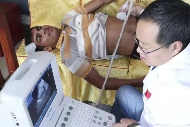 除了在受援醫(yī)院開展手術、查房、會診等工作,倪曉辰副主任隨我國援尼泊爾醫(yī)療隊多次組織義診,到加德滿都華人華僑協(xié)會、博卡拉華人華僑協(xié)會、紅獅水泥尼泊爾公司、新希望尼泊爾公司、尼泊爾中華寺等為在尼泊爾的中國同胞免費體檢、贈送各種常備藥械藥品、提供醫(yī)療咨詢等,其中,倪曉辰進行了數千例泌尿系超聲檢查排查泌尿系結石和數場科普講座。