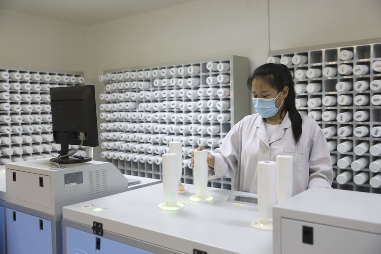 在智能中藥房內,幾排白色膠囊瓶緊湊地布滿一面墻,如同蜂巢,近300味常用中藥全部“變身”為中藥配方濃縮顆粒,分裝于筒狀容器內。患者交費后,持就診卡來窗口報道,藥師將對醫(yī)師的電子處方進行審核確認,合理處方被上傳至該智能調配系統(tǒng),系統(tǒng)將處方中的每位飲片自動折算成相應的顆粒劑量。點擊自動調配后,墻上相應的膠囊瓶便有亮燈顯示,取出亮燈的膠囊瓶,放置在配方機調劑位置,經過掃碼二次確認后,機器便自動按處方劑量要求,將配方顆粒調劑并封裝在塑料藥袋里,調劑方式采用自動化數(shù)字控制,最大程度縮短患者的取藥等候時間,同時也避免了中藥調劑過程中出現(xiàn)的人為差錯,進而減少了醫(yī)患矛盾。
