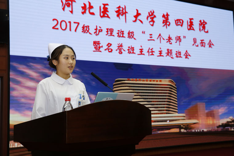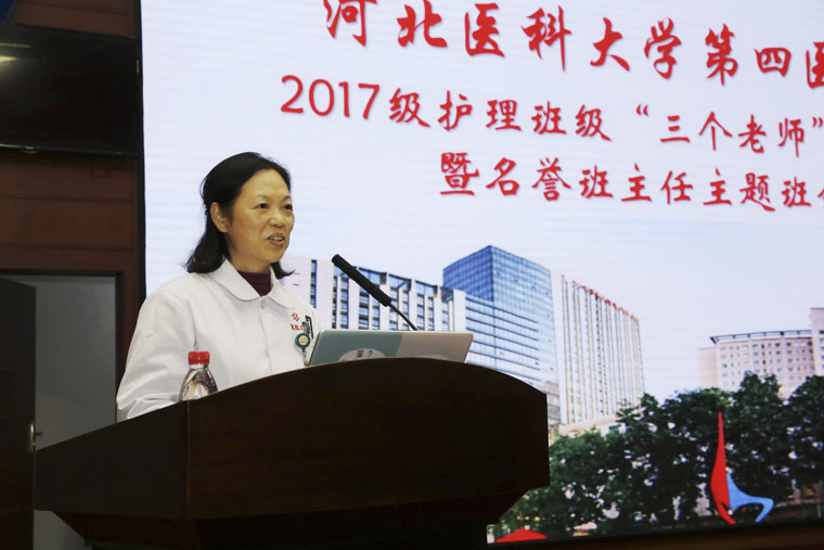 為進(jìn)一步落實河北醫(yī)科大學(xué)二屆四次全委(擴大)會關(guān)于為學(xué)生班配齊配好“三個老師”,深入推進(jìn)協(xié)同育人工作的相關(guān)要求,10月13日和14日下午,護(hù)理教學(xué)辦公室2017級護(hù)理班級“三個老師”見面會暨名譽班主任主題班會分別在東院和本部舉行。名譽班主任、護(hù)理部李來有主任和東院護(hù)理部康琳主任,學(xué)業(yè)導(dǎo)師、護(hù)理部陳璐副主任、劉風(fēng)俠副主任,護(hù)理教學(xué)辦公室全體老師及2017級護(hù)理班級全體學(xué)生110余人參加了此次活動。