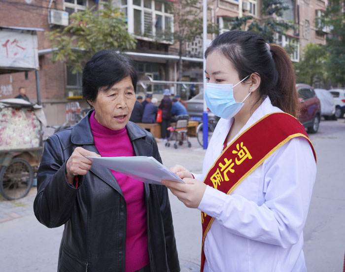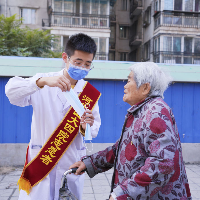 當(dāng)日上午,2019級(jí)專碩13班的同學(xué)按照提前分好的小組,在班干部的組織下,前往部分科室為缺少家人陪伴的老年患者提供針對(duì)性的服務(wù),包括幫助行動(dòng)不便的老年患者外出活動(dòng),為老年患者查體、聊天等。下午,2020級(jí)專碩15班的同學(xué)在棉二小區(qū)開展社區(qū)義診活動(dòng),共為50余位老人進(jìn)行了健康宣教,還為30余位老人免費(fèi)測(cè)量了血壓和血糖。同學(xué)們通過傳遞正確戴口罩、洗手的方式,提醒老人們注意做好疫情期間的個(gè)人防護(hù),還給參與活動(dòng)的老年朋友分發(fā)了一些生活中較為常用的“小禮物”。