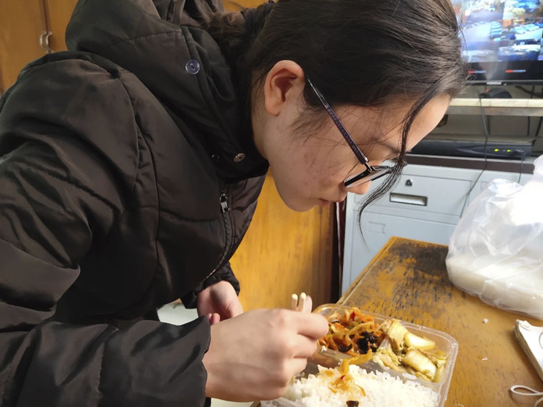 下午兩點半,剛結束完上午社區核酸檢測任務的新入職護士張奇,僅用時三分鐘吃完了冰涼的午飯。