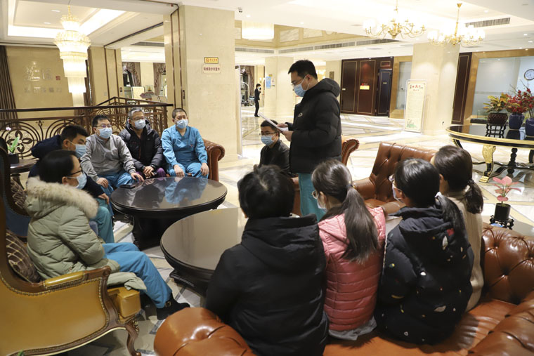151830分,我們正式入駐市五院。作為本次醫療隊的隊長,我將醫療任務與責任放在首位,根據隊員的情況,妥善分工,安排了各項工作后第一時間開始實施臨床救治工作。因為工作關系,接電話不方便,愛人通過微信留言情況告知我家里的情況,雖然內心有千萬個理由想回家看奶奶最后一眼,但有更重要的理由告訴我:要堅守一線。