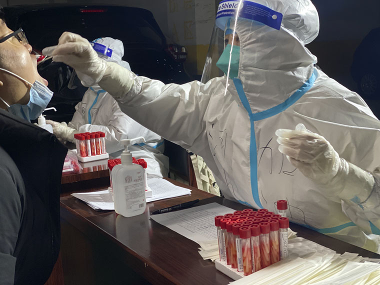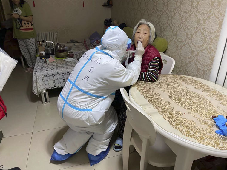 直到下午2、3點(diǎn),很多采集隊(duì)員才顧上吃飯,卻不敢多喝一口水,就怕上廁所耽誤時(shí)間。簡(jiǎn)單調(diào)整之后,她們抓緊繼續(xù)下午的工作,有些隊(duì)員一口氣忙到晚上10點(diǎn),一天持續(xù)工作了近14個(gè)小時(shí)。當(dāng)脫下防護(hù)服、摘下口罩時(shí),大家看著彼此臉上凹凸不平的勒痕,會(huì)心一笑,她們?cè)诟锌惶斓男羷诠ぷ髦嘁不ハ喾窒碇?jīng)歷的感動(dòng)。