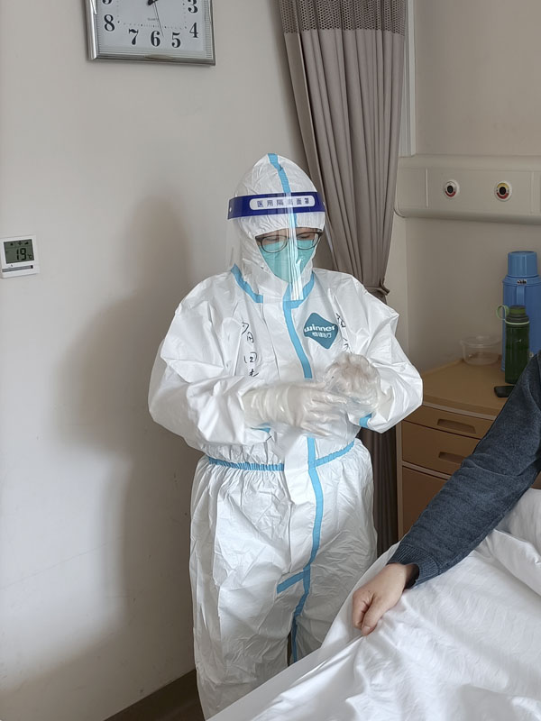 呼吸內(nèi)科胡文霞副主任,耿楠、秦文文主治醫(yī)師參與援助,她們分在不同的病區(qū)開展工作,耿楠暫時(shí)擔(dān)任醫(yī)療隊(duì)隊(duì)長。胡文霞副主任醫(yī)師作為河北省新冠疫情專家組成員,主要負(fù)責(zé)新冠二區(qū)工作。到達(dá)市人民醫(yī)院后,她迅速進(jìn)入工作狀態(tài),盡快熟悉全科患者病情,每日參加國家級專家查房,及時(shí)匯報(bào)患者病情變化及制定每日治療措施。每天結(jié)束繁重的臨床工作后,回到駐地還要填寫表格,及時(shí)上報(bào)患者情況。經(jīng)過她的整理,繁雜的信息變得清晰明了,她也因?yàn)楣ぷ骷?xì)致多次受到國家級專家組的表揚(yáng)。