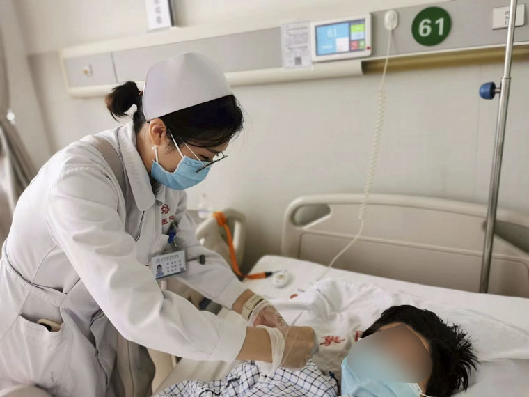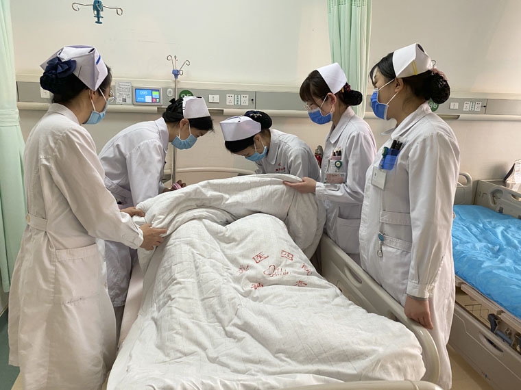 婦科三病區的護士姐妹為患者進行床旁護理。