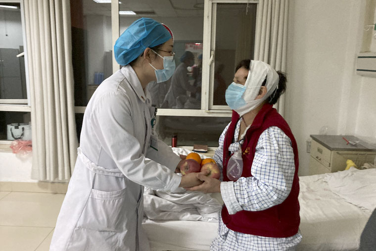 口泌病區的金婷婷主動值班,為在院患者及家屬送去了熱氣騰騰的餃子和新鮮的水果。