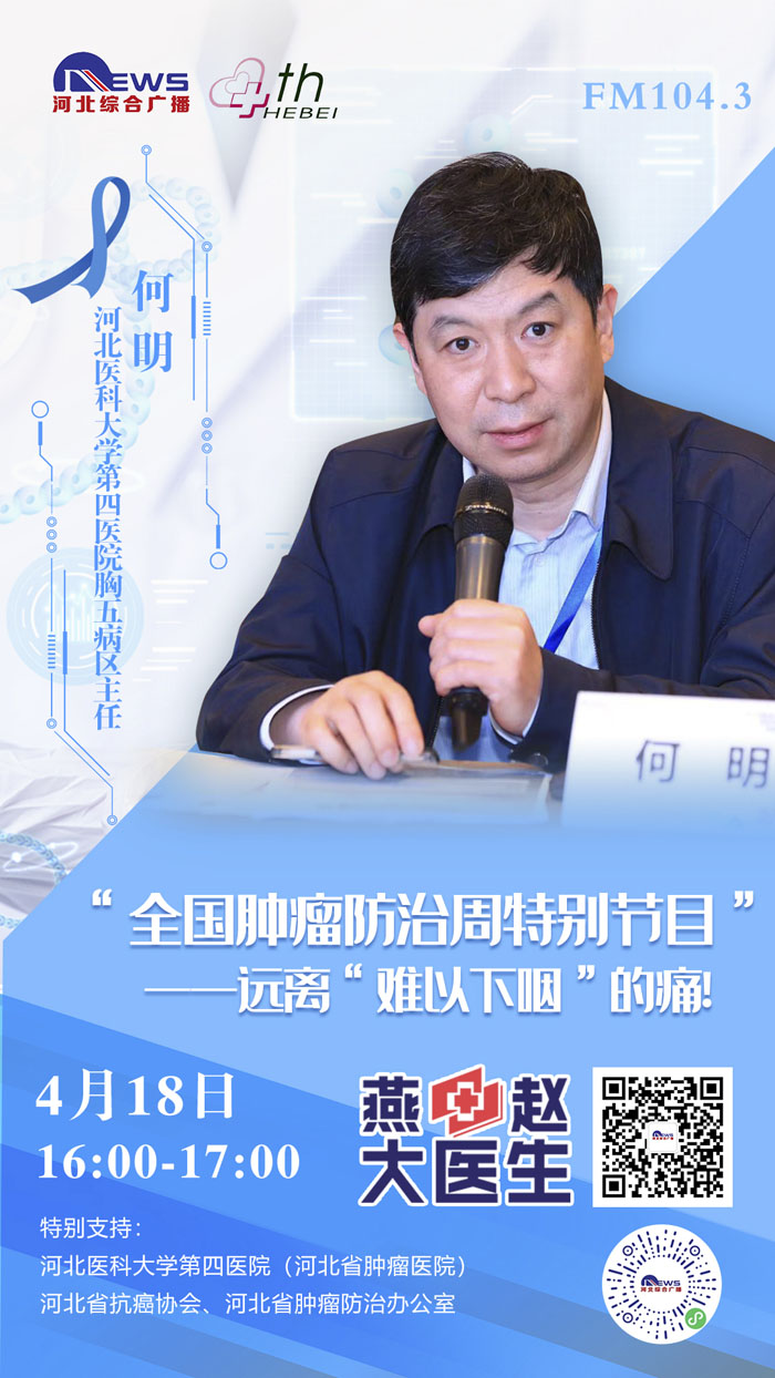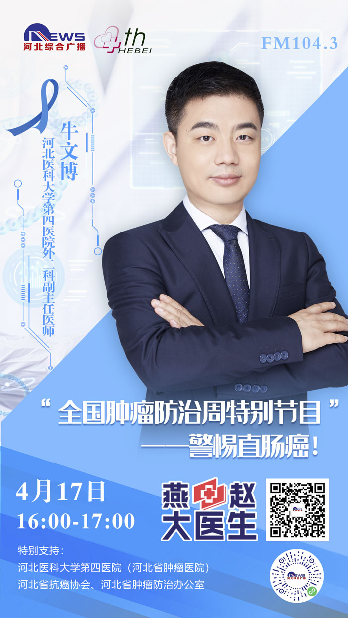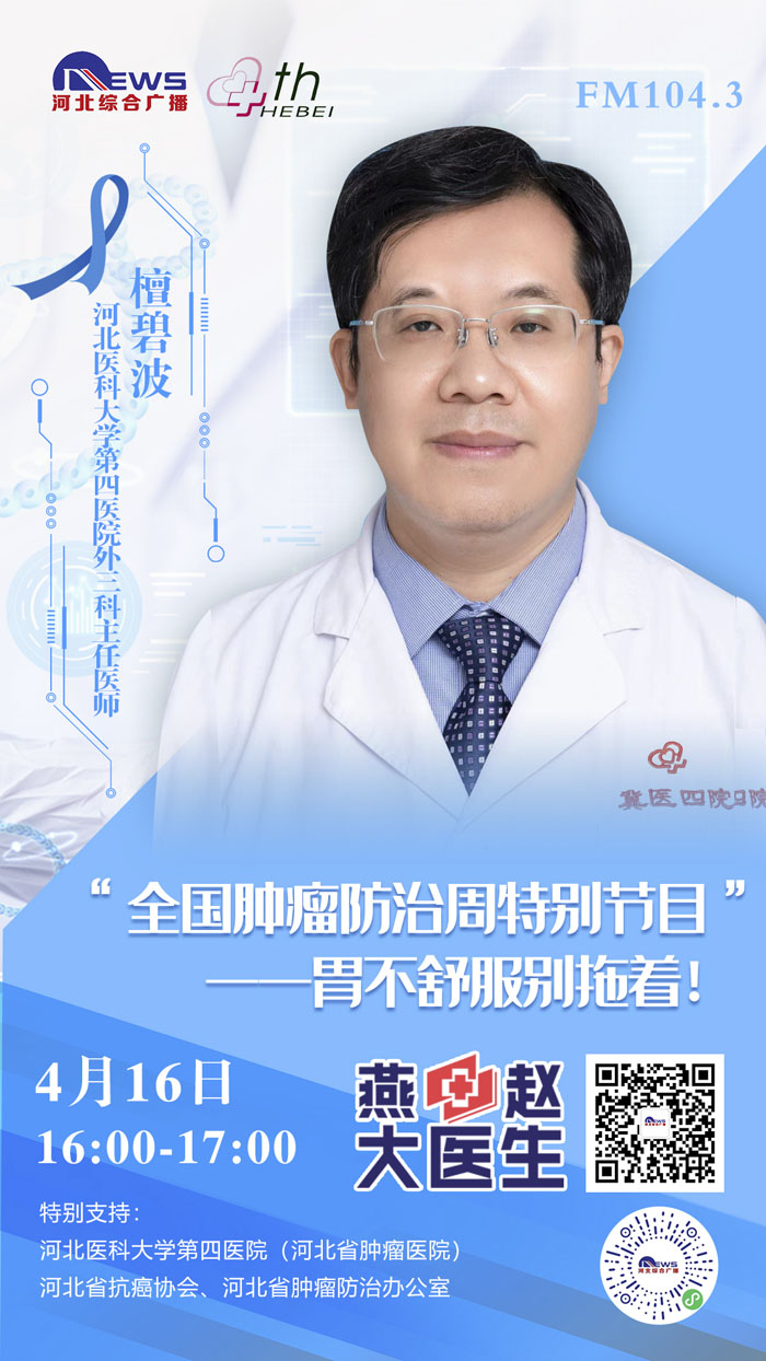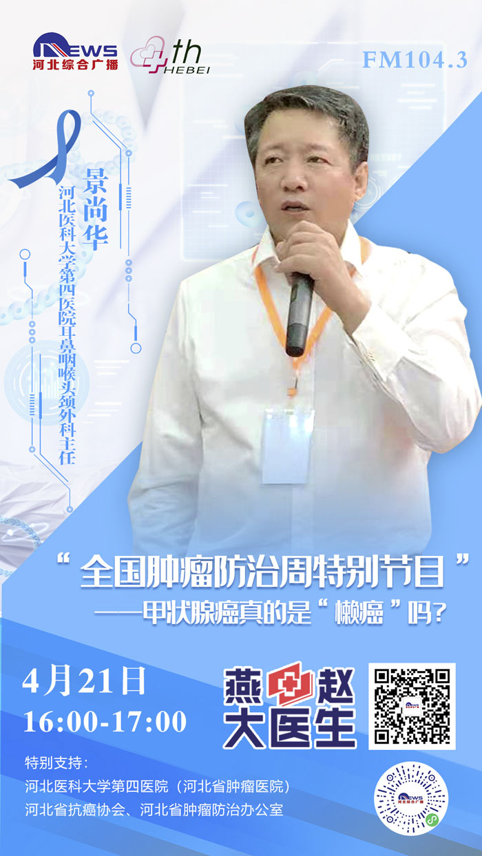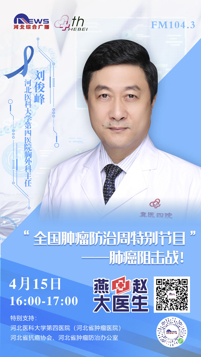 2021年4月15-21日是第27個全國腫瘤防治宣傳周,為進一步貫徹黨中央、國務院對癌癥防治工作的決策部署,推動落實健康中國癌癥防治專項行動,提高全社會癌癥防控意識,營造全民防癌抗癌的良好氛圍,我院與河北廣播電視臺新聞綜合頻率《燕趙大醫生》共同發起:《科學抗“瘤”,走向新生》“腫瘤科普季”系列直播活動。