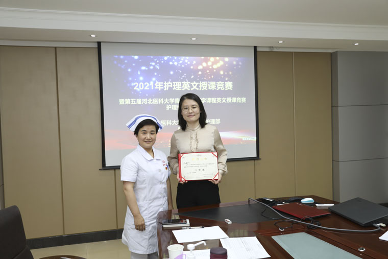 經過激烈角逐,評委從語言儀態、教學內容、教學方法、教學效果等方面對8位選手進行綜合評價,最終來自東院乳腺外科的劉磊脫穎而出,成績優異,將代表我院護理人員參加河北醫科大學第五屆青年教師醫學課程英文授課競賽。
