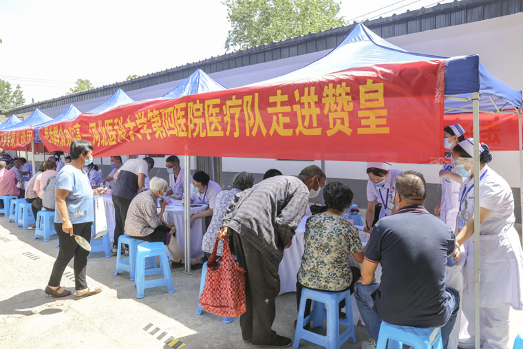 6月11日,全國文化科技衛生“三下鄉”集中示范活動(河北站)暨河北省第25屆“三下鄉”集中服務活動在石家莊贊皇縣舉行,活動以“永遠跟黨走、奮進新征程”為主題,教育部副部長翁鐵慧,河北省委常委、宣傳部部長張政出席啟動儀式。由河北醫科大學黨委常委、副校長馮軍和宣傳部部長宋子恒帶隊,我院宣傳部組織10余名醫護專家參與此次集中服務活動,為百余名患者送醫送藥送健康,將“我為群眾辦實事”實踐活動走深走實。