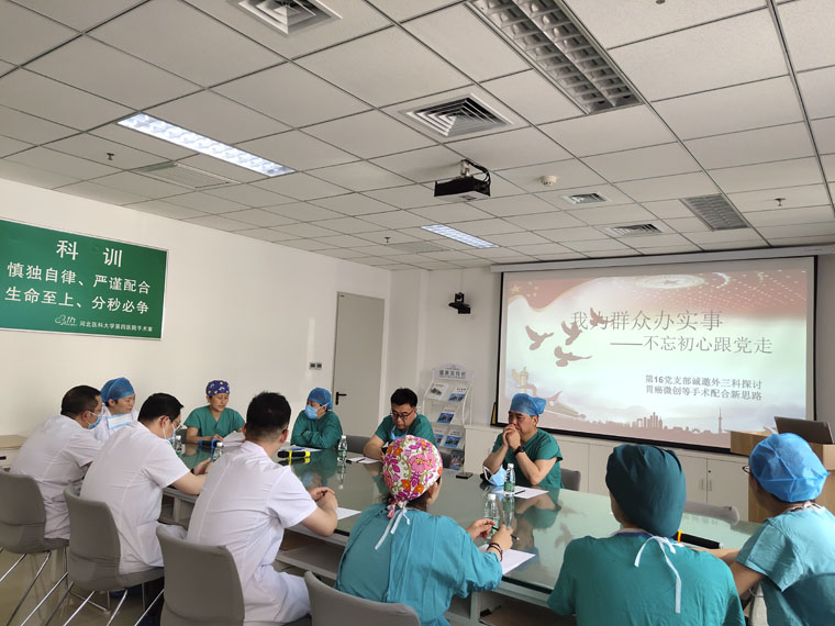 6月25日,第16黨支部在本部手術室交班室舉辦了主題黨日活動,為了給手術患者解決圍術期實際問題,邀請外三科專家深入探討胃癌微創等手術精細配合新思路。隨著腹腔鏡微創尤其是機器人輔助下胃癌手術切除的快速發展,以及微創手術最終要與實現術后快速康復相吻合,對麻醉與手術在整個圍術期積極參與和精細配合提出了更高的要求,此次交流有助于發現問題、解決問題、完善預案,提升應急處理能力,滿足臨床科室手術發展的需要,最終不斷改善手術患者就醫體驗。