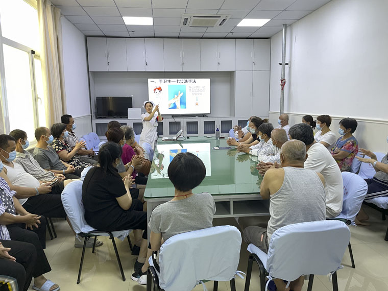 第42黨支部于6月30日開展了豐富多彩的醫患互動的主題黨日活動。目前處于疫情常態化防控期間,住院患者無法外出理發,護士長宋博寧就帶領支部黨員為住院患者義務理發,并幫助行動不便、視力下降的老年住院患者剪指甲。護士楊小雪還為住院患者及其陪護人員,進行了一次生動細致的手衛生講解課。