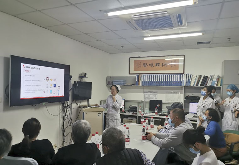 第43黨支部組織黨員開展了多項患者宣教活動。東院腫瘤免疫治療科開展了腫瘤免疫治療相關不良反應、深靜脈置管患者宣教活動,東院呼吸內科開展了肺癌的早期篩查宣教活動,東院內分泌科開展糖尿病患者飲食宣教活動。