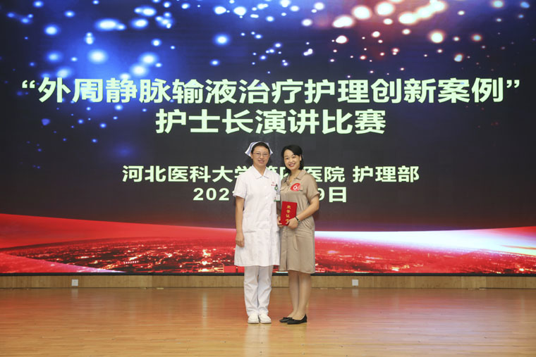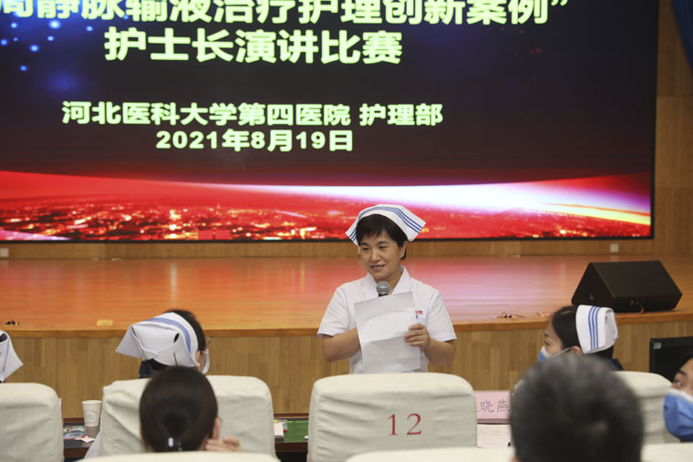 護理部李來有主任在致辭中表示,本次競賽是搭建青年護士長護理質量管理交流平臺,希望青年護理管理者能從管理、創新的角度加強外周靜脈輸液治療過程中風險與質量控制,促進靜脈輸液治療護理領域的規范化發展。胸一科米麗麗、消化內科魏金梅護士長擔任比賽主持。