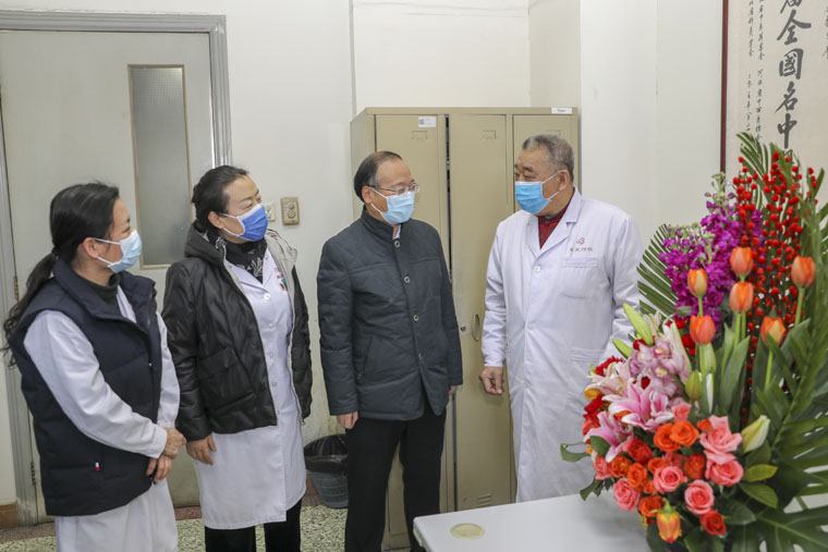 倪鐵軍副書記一行來到我院中醫科門診,向劉亞嫻教授致以新春的問候,親切詢問了他的身體健康狀況及工作生活情況,高度贊揚了劉亞嫻教授為學校和醫院發展作出的杰出貢獻。劉亞嫻教授對學校和醫院黨委的慰問和關懷表示感謝,介紹了中醫學術發展傳承現狀,表示將發揮余熱,助力學校和醫院的高質量發展再上新臺階。