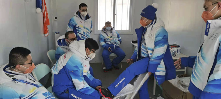 崇禮賽區氣候干燥,日平均溫度在-20℃以下,疫情防控形勢依然嚴峻復雜,新春佳節無法與家人們團聚……面對種種考驗,大家克服心理和生理上的困難,顧全大局、聞令而動,精神飽滿、斗志昂揚,將四院精神和四院力量帶到新的工作崗位上,他們的身影是冬奧場地上一道靚麗的風景線。