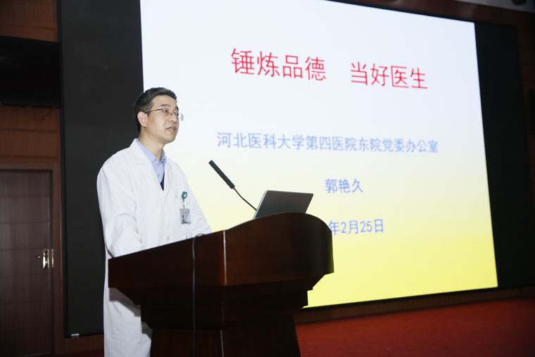 東院黨辦主任郭艷久和門診部主任江錦平分別以《錘煉品德 當好醫生》和《做更好的醫療服務》為題向大家講述了一名合格的醫生必須德才兼備,要學會用良好的醫患溝通方式和有效的措施處理醫療糾紛。會后,同學們展開了熱烈的討論,大家認為,學好專業知識是前提,還要不斷提高自身綜合素質,更要堅定理想信仰,為國家醫藥衛生事業作出貢獻。