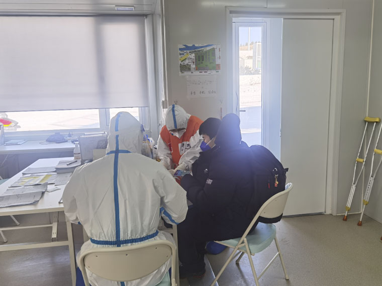 今天是冬殘奧會的第二天。我們穿好防護裝備,剛剛抵達運動員醫療站,就有一名技術人員因為頭痛前來就診。我們做好登記,詳細詢問病史,考慮其年齡大、病史等不確定因素,建議轉診到北醫三院崇禮院區進一步檢查。辦好全部手續后由急救120的老師完成轉運。隊員們配合默契、快速高效,經過多日的磨合,大家對流程已成竹在胸。