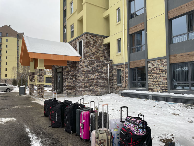 當日下午3:00,大家順利抵達崇禮賽區,領取物資、裝卸行李、分配任務……一切準備好后,李崢與環外的同事們一起奔赴駐地。此時一股冷風吹來,忙碌的史佳杰突然意識到,竟然忘了道別!