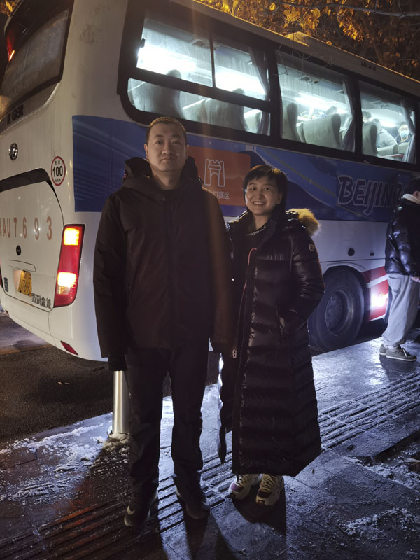 1月23日凌晨,覆蓋著“北京2022”白邊藍色字樣的大巴車早已在預定地點等候我院冬奧醫療保障隊員。05:40,天還沒亮,史佳杰、李崢夫妻二人拖著兩個大行李箱,快步走來并揮手與送行的家人告別,二人放好行李后,不約而同地將視線轉向了家的方向……