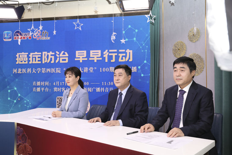 4月17日,我院與河北廣播電視臺新聞廣播《燕趙大醫生》共同推出了:癌癥防治,早早行動——河北醫科大學第四醫院“健康大講堂”第100期特別直播活動,作為第28個全國腫瘤防治宣傳周的重要活動,胸外科主任劉俊峰教授、乳腺診治中心主任宋振川教授、病理科主任劉月平教授,在線普及癌癥相關知識,幫助廣大受眾提高防癌抗癌意識,主任之間的互動科普是活動的一大亮點。本次活動通過線上多平臺直播,近34萬人觀看互動,反響強烈。