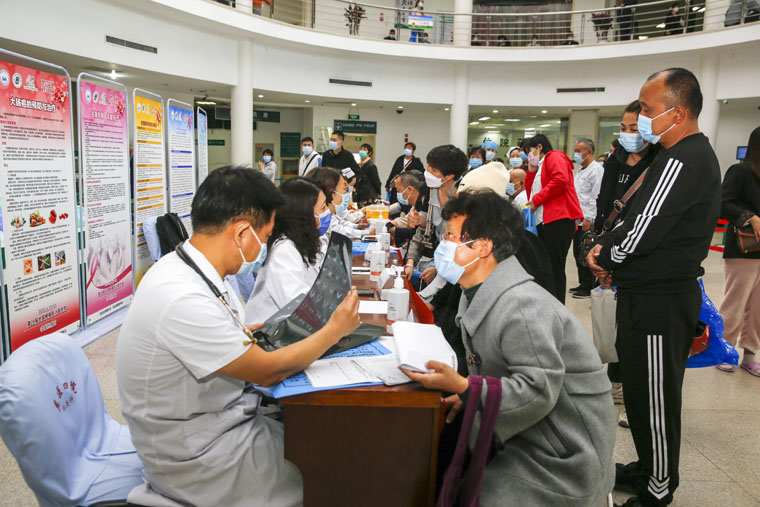 在“第28屆全國腫瘤防治宣傳周”到來之際,4月20日,血液內科聯合CT磁共振科及放療科于東院區門診大廳開展了多科室聯合義診及患者宣教活動,義診現場充分做好疫情防控工作。血液內科高玉環、刁蘭萍、劉海生,CT磁共振科許茜,放療科劉志坤等經驗豐富的專家為廣大患者、群眾答疑解惑,并給予可行性的指導意見。義診還提供免費測量血壓和血糖服務。