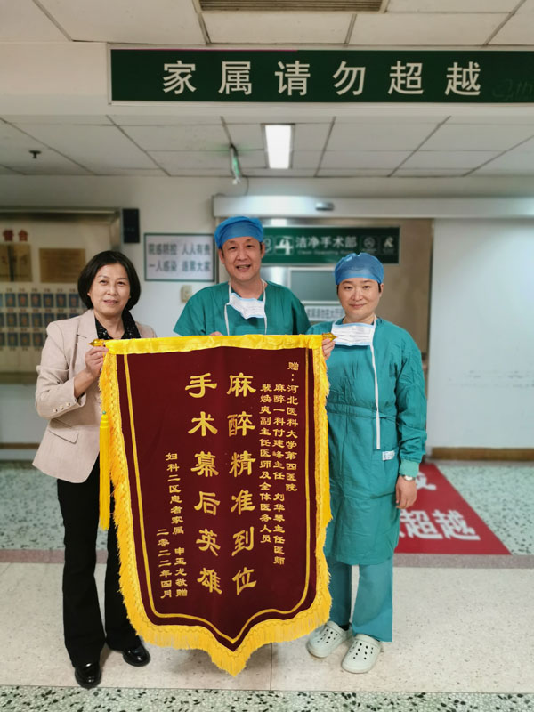 近日,我院麻醉一科收到一名患者家屬送來的錦旗,“麻醉精準到位,手術幕后英雄”,短短12個字,真切體現出患者及家屬對麻醉一科人員在合并癥多、圍術期風險大的手術中做到精準麻醉的贊揚與認可。“真心感謝你們,解決我們家困擾多年的難題”。